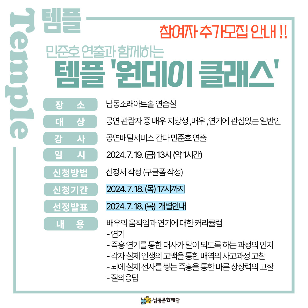 민준호 연출과 함께하는 템플 '원데이 클래스'